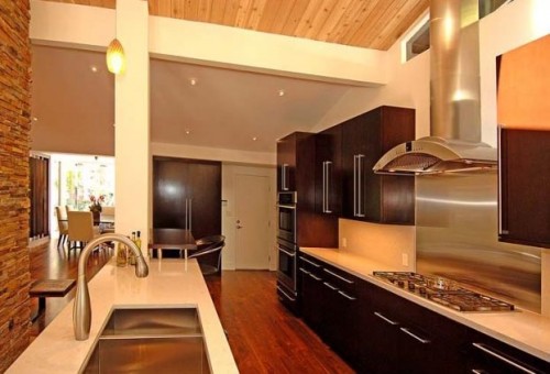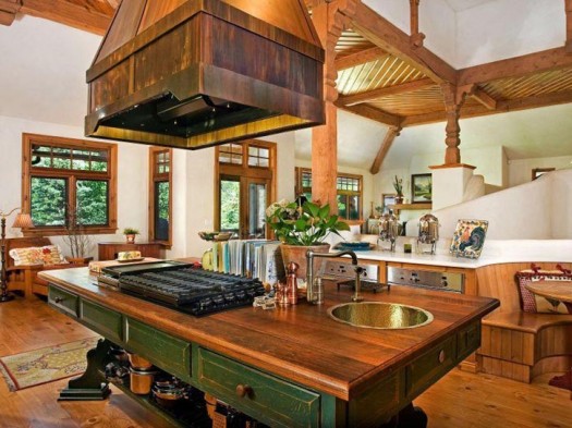 Архитектура и атмосфера дизайна этого дома, представляет большие и необычные помещения для проживания, нестандартное ручное производство шкафов, дверей из дерева, деревянная кухня остров, паркетные полы, роскошные столярные изделия.
