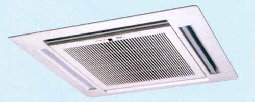 Кассетный кондиционер используется для монтажа в подвесной потолок. Основное его достоинство – незаметность, наружу выходит только нижняя часть, закрытая декоративной решеткой.