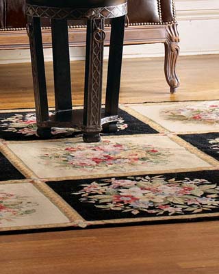 Современные французские ковры сохранили традиционные детали рисунка: переплетающиеся ленты, банты, растительный орнамент и цветочные букеты, но колорит их стал мягче, элегантнее. Такие ковры, как на фото, прекрасно дополняют интерьеры классическом стиле.