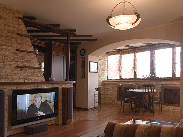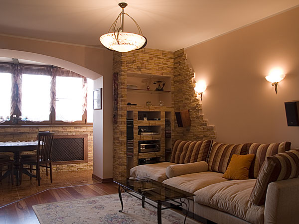 Стоит отметить, что сегодня искусственный камень применяется для внешней отделки и внутренней отделки не только частных, но и общественных зданий - кафе, ресторанов, клубов, магазинов, гостиниц, банков. Все дело - в исключительных стилистических возможностях материала. С одной стороны, бетонный камень, имитирующий природный аналог, является воплощением традиции. С другой - колонны под известняк или плитка с узором грубо обработанного камня легко впишутся в интерьер, выполненный в духе минимализма или хай тека. Кроме того, искусственным камнем можно изменить знакомый облик старого здания. Нередко с помощью бетона реставрируют памятники архитектуры или копируют разрушившиеся детали из натурального камня, так как "замена" практически незаметна невооруженным глазом.